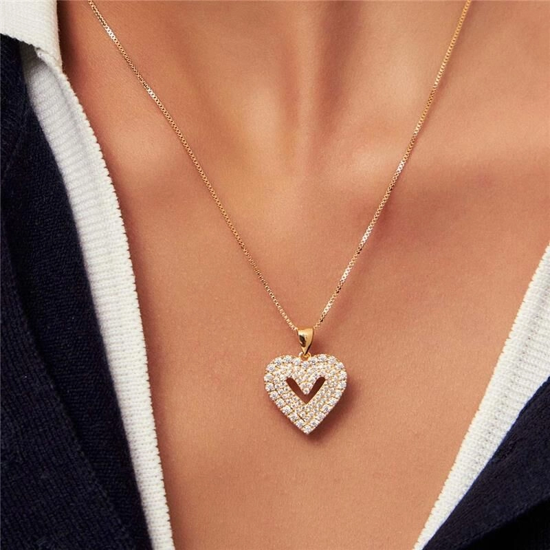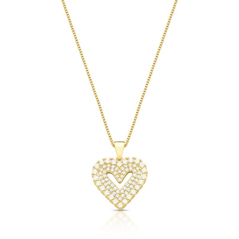 COLAR COM PINGENTE DE CORAÇÃO VAZADO CRAVEJADO