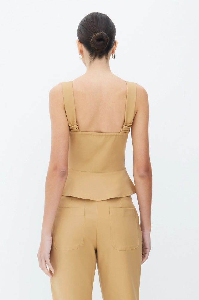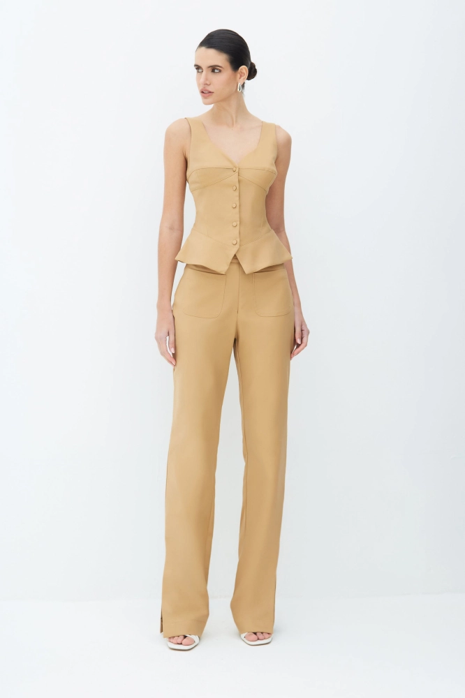 Conjunto com regata recorte busto e calça reta com abertura na barra