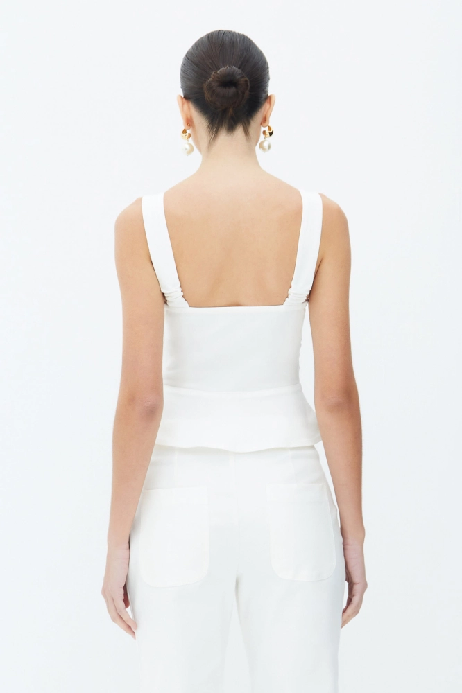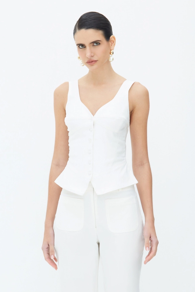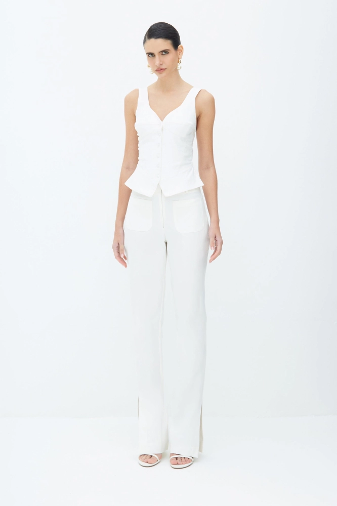 Conjunto com regata recorte busto e calça reta com abertura na barra
