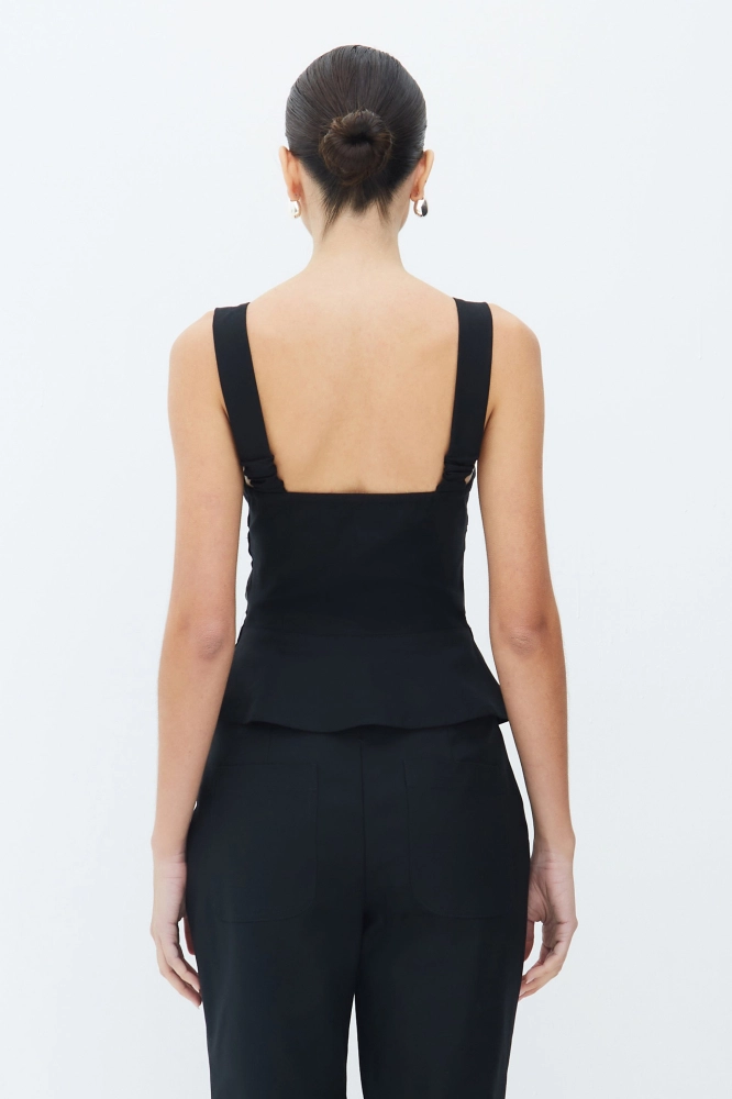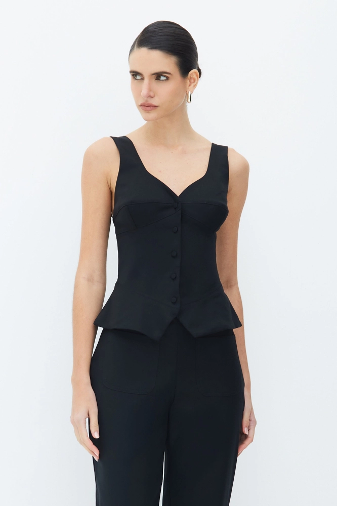 Conjunto com regata recorte busto e calça reta com abertura na barra