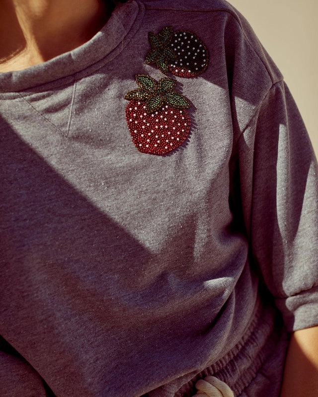 Conjunto Off Short Blusa Patch Morangos Skazi