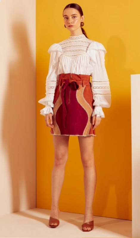 Saia Feminina Curta Clochard Patch Work Suede