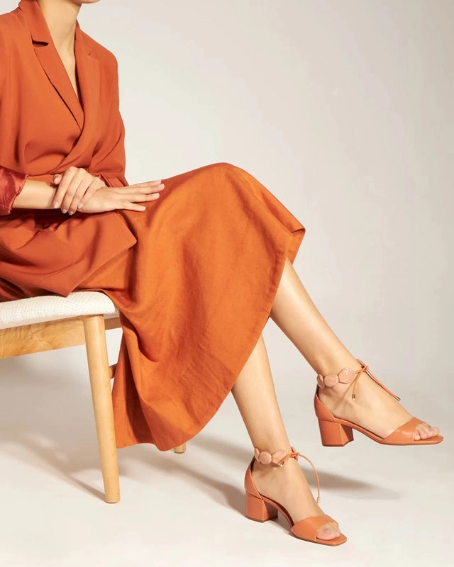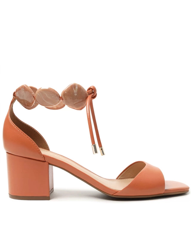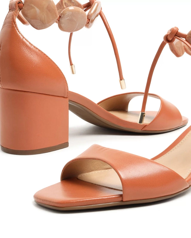 Sandália Marrom Couro Salto Bloco Resina