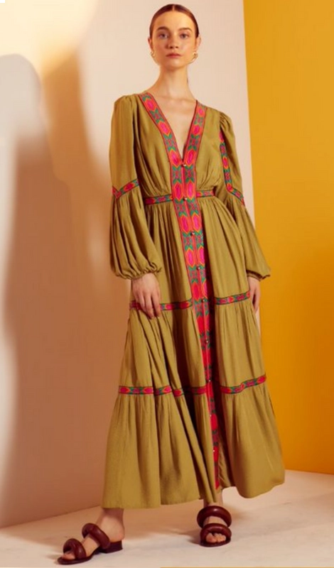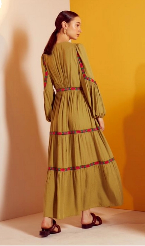 Vestido Feminino Chemise Midi Galão Geométrico Skazi