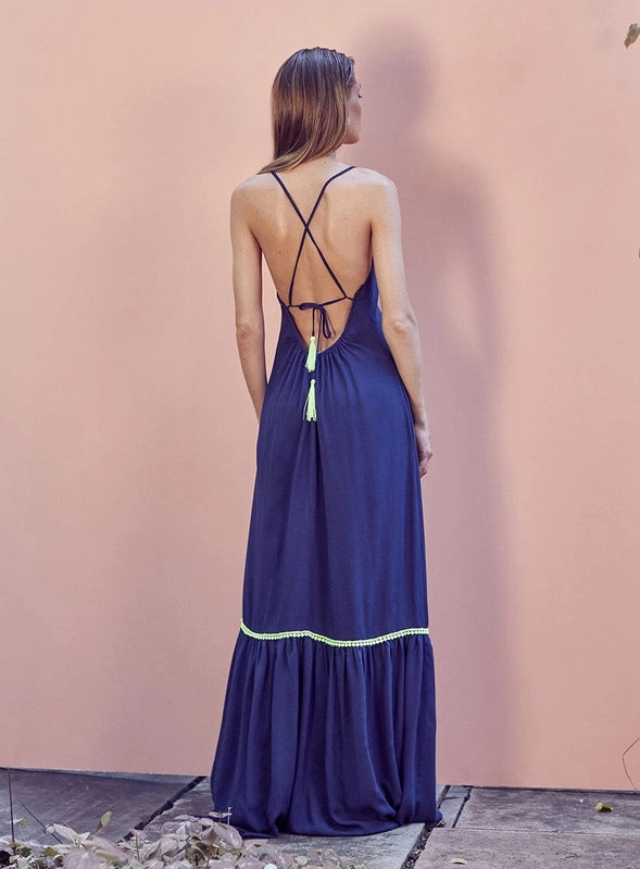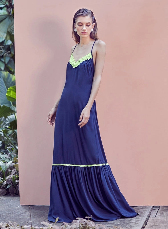 Vestido Longo Decote Renda Neon Skazi
