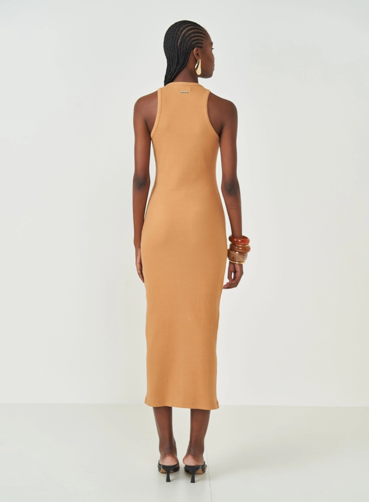 Vestido Midi Slim Com Abertura Em Botões e Fenda colcci